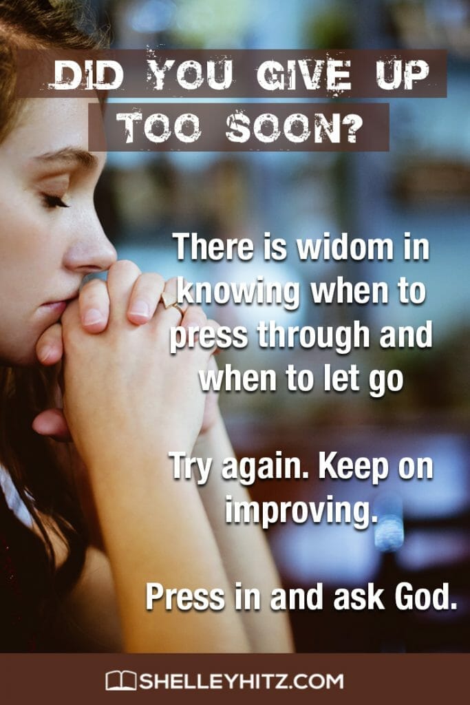 I just want to ask you again today, did you try one thing where you gave up a little too early? Did you let that discouragement set in? Did you let those lies from the enemy penetrate down and cause you to quit? Did God really tell you to stop? Did He really tell you to quit? Or did you just give up because you thought you were a failure and couldn’t do it?