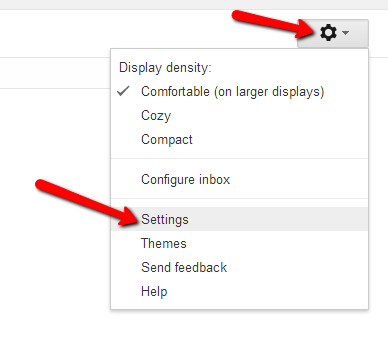 First, you will click the gear located in the upper right hand corner of your Gmail account. Then, click on settings.