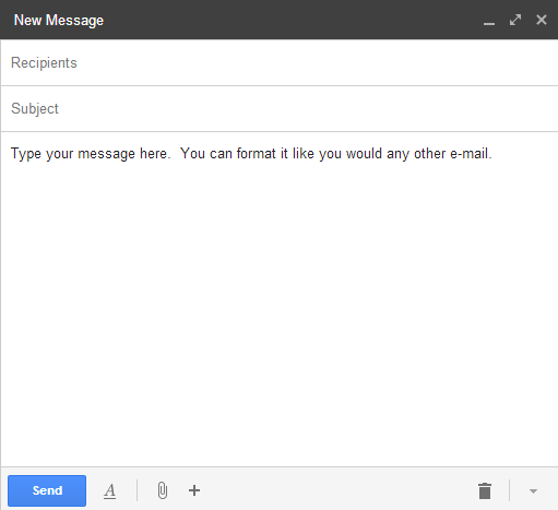 Then, you will type the message you want to save within the body of the e-mail. This can be formatted like you would any other e-mail with links, bullets, etc.