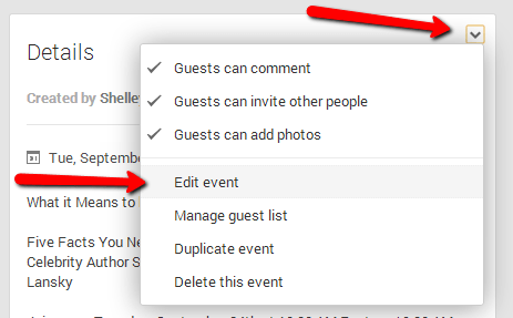 Then, on your event page, click the dropdown menu next to “Details” and choose edit event.