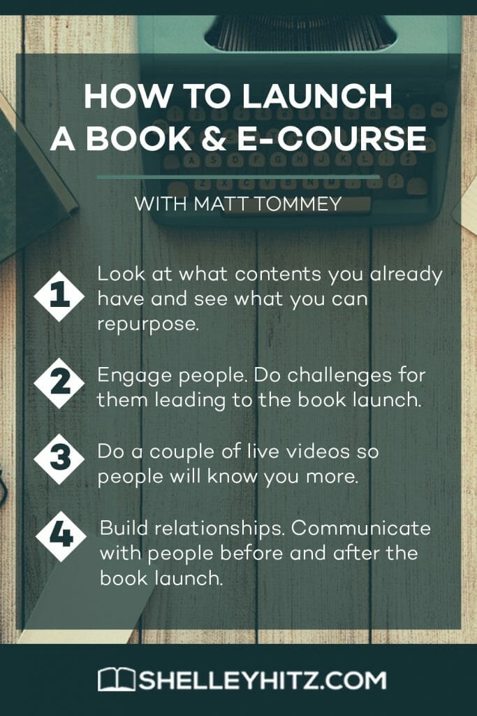Matt: I think, especially for somebody that’s writing a book, since so many of your listeners are authors, begin to look at ways that you can repurpose what you’re doing. An e-course, even though that seems like, “oh my gosh, that’s so huge!” It’s really not.
