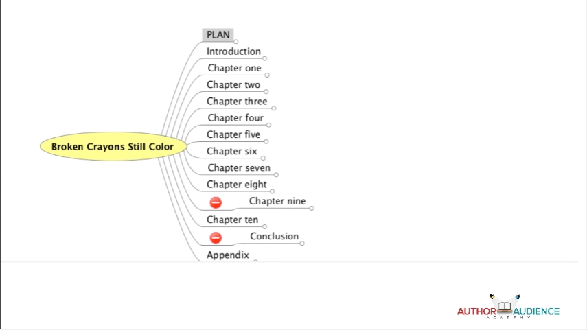 So I added this plan into my book outline, and you can see here, chapter nine and the conclusion still are not done.