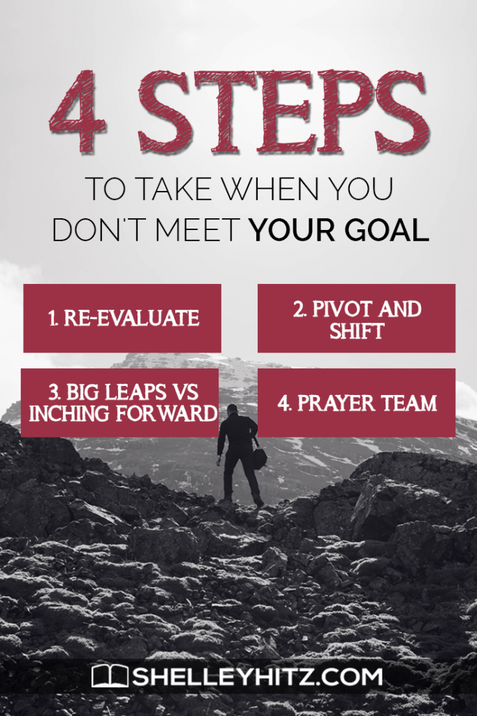 The first step, if you don’t meet your goal, I recommend you doing is to re-evaluate. Sometimes we try to bite off more than we can chew. Can anyone relate? Oh my goodness, I think I can do a lot more than what I typically can do. I think the reason is, we think, “OK, I can just fill in all these spots, I can do all these things.” What ends up happening is it takes longer than we expect, obstacles happen, we have to take care of things we didn’t expect, and we just don’t get done what we plan to get done.